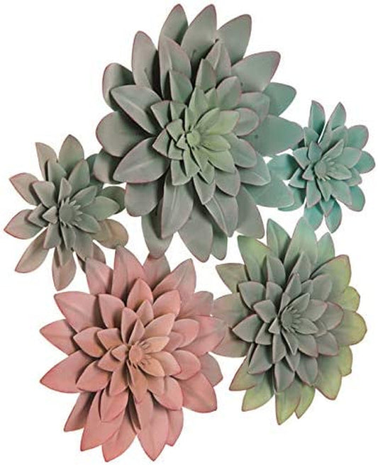 3D Metal Succulent Wall Decor - Multicolored Cluster , Hand Painted, Hanging Metal Flowers Wall Decor