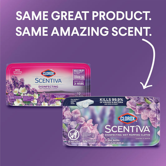 Scentiva Disinfecting Mopping Cloths, Lavender and Jasmine, 12 Wet Refills (Pack May Vary)