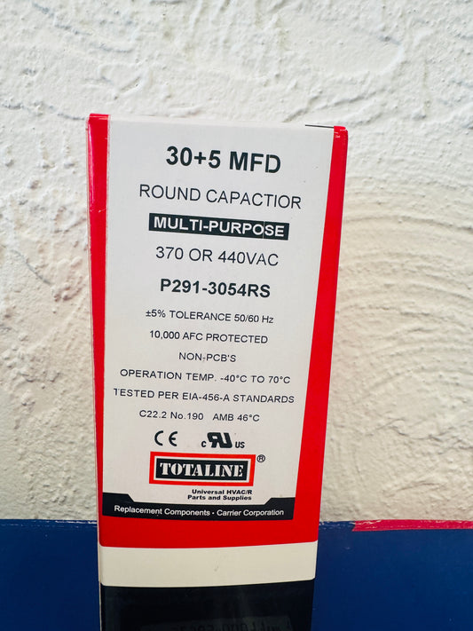 TOTALINE (TP-CAP-30/5/440R) 30+5 MFD (Microfarads) 440 Volt round Dual Run Capacitor | 60,000 Hour Operating Life, Aluminum Composition, -40°F to 158°F (-40°C to 70°C) Temperature Range