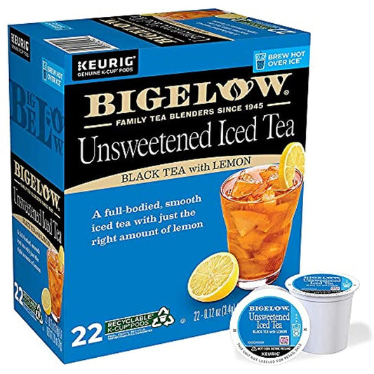 Bigelow Unsweetened Black Tea with Lemon Iced Tea K Cups, 22 Count Box (Pack of 1), Caffeinated 22 K Cup Pods Total