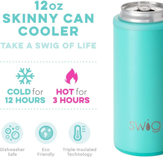 Swig Slim Can Cooler, Insulated Skinny Can Holder, Stainless Steel Can Cooler for Tall Skinny Cans, Skinny Can Cooler Compatible with White Claw, Truly, High Noon, Michelob Ultra (Aqua)